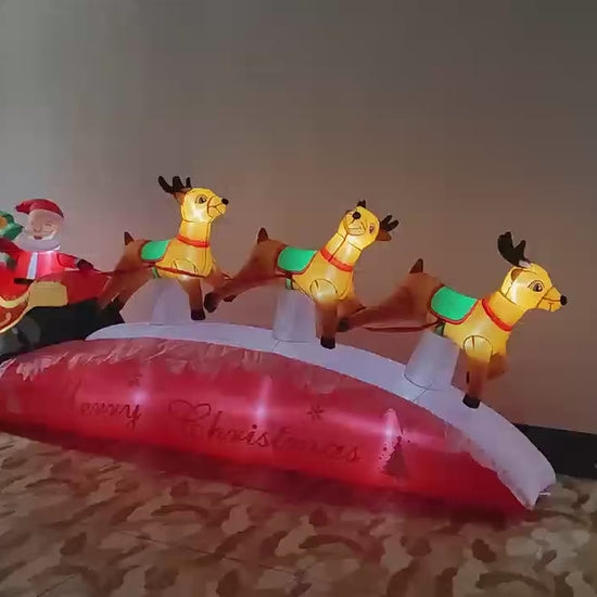 🎈 Massive 3-meter magic! This inflatable features a jolly Santa, gift boxes, and 3 bright reindeer riding into the night—complete with internal LED lighting for that glow-up every neighborhood kid dreams of.
