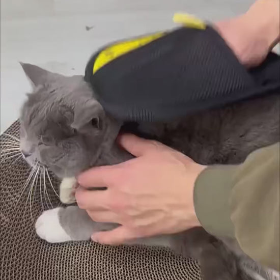 This modern electrostatic glove collects hair from pets, furniture, clothes, and even cat towers — no sticky rollers, no batteries, no mess. Just slip it on and swipe. The static-charged fabric grabs onto every loose strand and keeps your home fur-free.