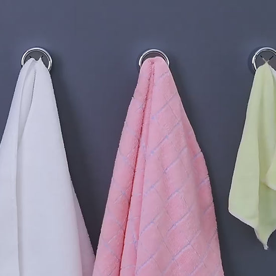 💡 These self-adhesive towel hooks instantly upgrade your kitchen, bathroom, laundry room or hotel space. Just peel, press, and pop in your cloth. The cross-grip silicone holds it securely without tearing or slipping.
